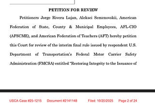 A teachers union, two truck drivers, and the future of commercial licensing walk into federal court. This isn't a joke. (Follow-up from my 10/21 Article…