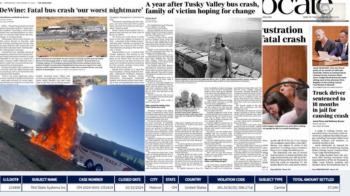 The Tusky Valley crash. Jacob McDonald walked out of jail in January 2026. Mid-State Systems paid $7,040. And the industry learned exactly what it was supposed to learn from all of it: nothing.