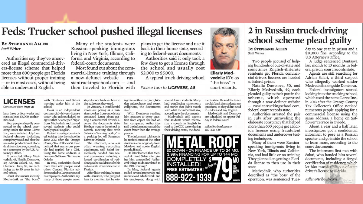 For $1,800 to $5,000, Larex promised Russian-speaking immigrants from New York, Illinois, California, and Virginia one thing: a guaranteed Florida commercial driver’s license. No matter what.